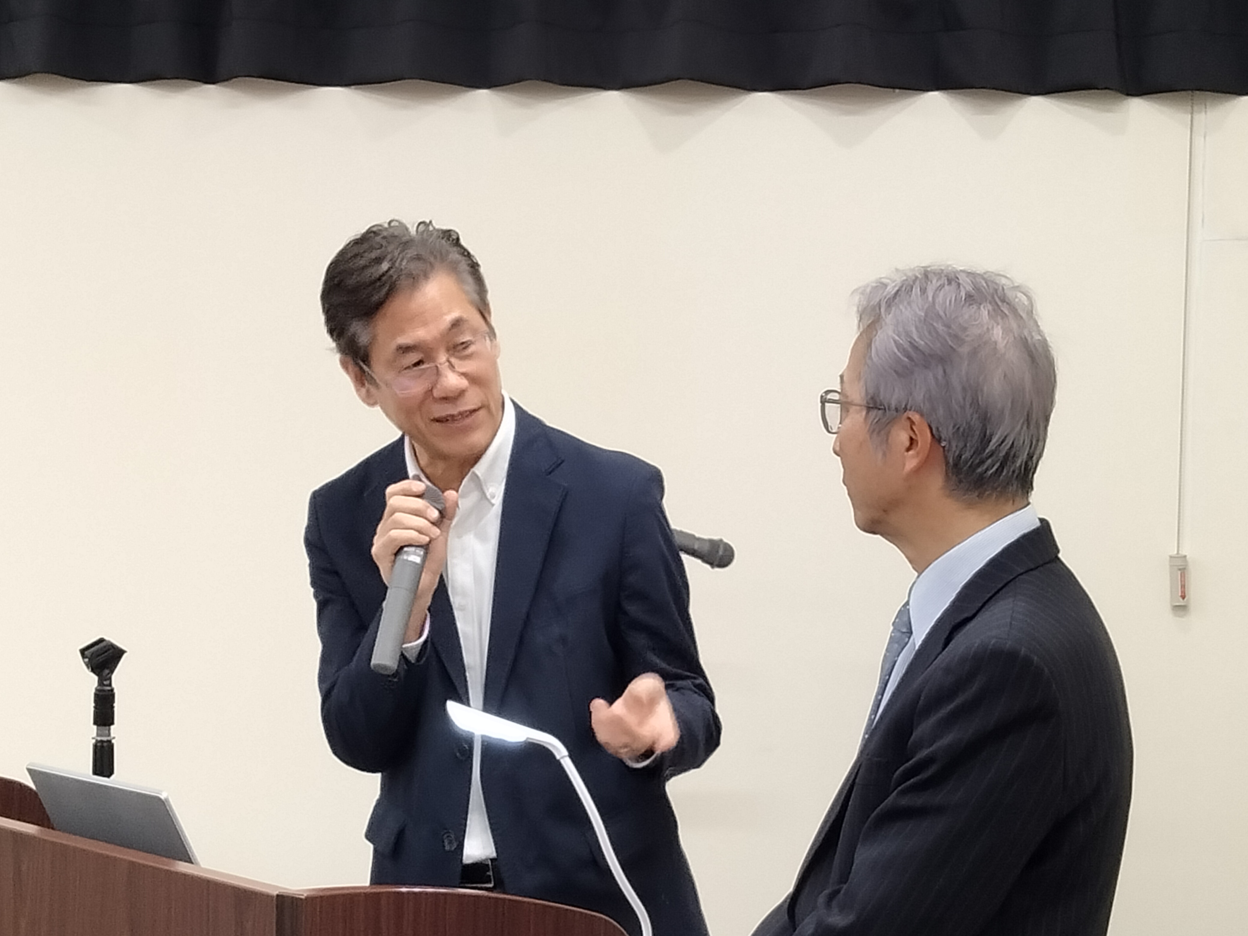 山口取締役(京都工芸繊維大学名誉教授、ハノイ医科大学名誉教授)、右